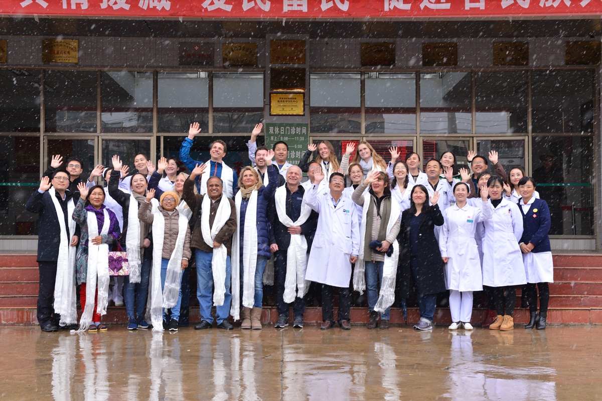 Über zehn EuroEyes Mitarbeiter – Ärzte, Pflegepersonal und Krankenschwestern – erreichten vergange Woche das verschneite Gannan in China. Zur Begrüßung überreichte Dr. Song, Leiter der örtlichen Klinik, dem EuroEyes-Team einen Hada, ein traditioneller Schal aus weißer Seide, der für Glück und Wohlwollen steht.