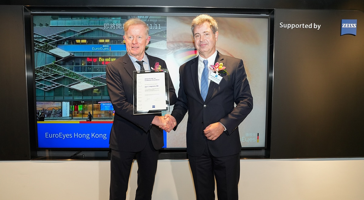 Während der Eröffnung der Flagship-Klinik von EuroEyes in Hongkong wurde Dr. Jørgensen mit dem Zeiss-Zertifikat ausgezeichnet.