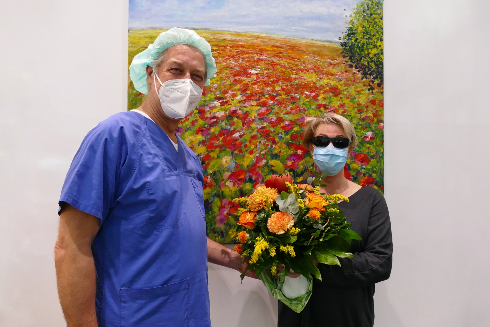 Am 06.11.2020 führe Dr. Ralf Christian Lerche, stellvertretender ärztlicher Leiter, erfolgreich eine Trifokallinsen-Behandlung bei unserer 8340sten Patientin, Frau Meesenburg, durch und überreichte ihr feierlich einen Dankesstrauß für das Vertrauen in EuroEyes.