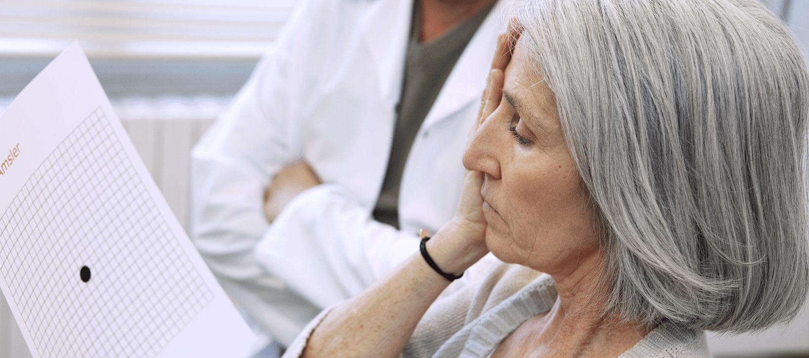 Verzerrtes Sehen ist ein erstes, sehr ernst zu nehmendes Anzeichen einer möglichen Makuladegeneration. Die altersbedingte Makuladegeneration tritt üblicherweise ab dem 50. Lebensjahr ein. Weitere Folgen können graue, unscharfe oder „blinde“ Flecken sein.
